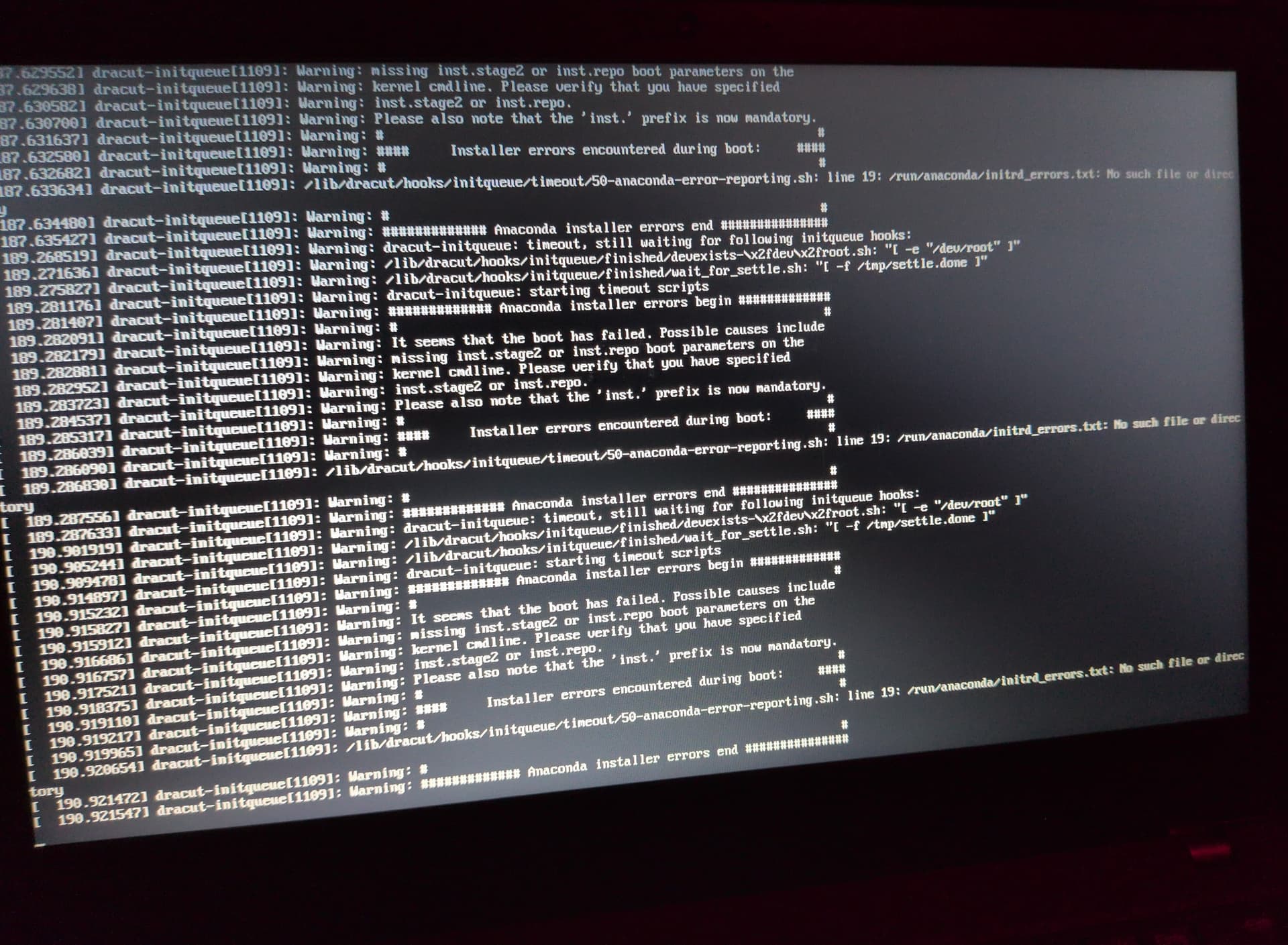 After that I get error messages and the system is in a loop.