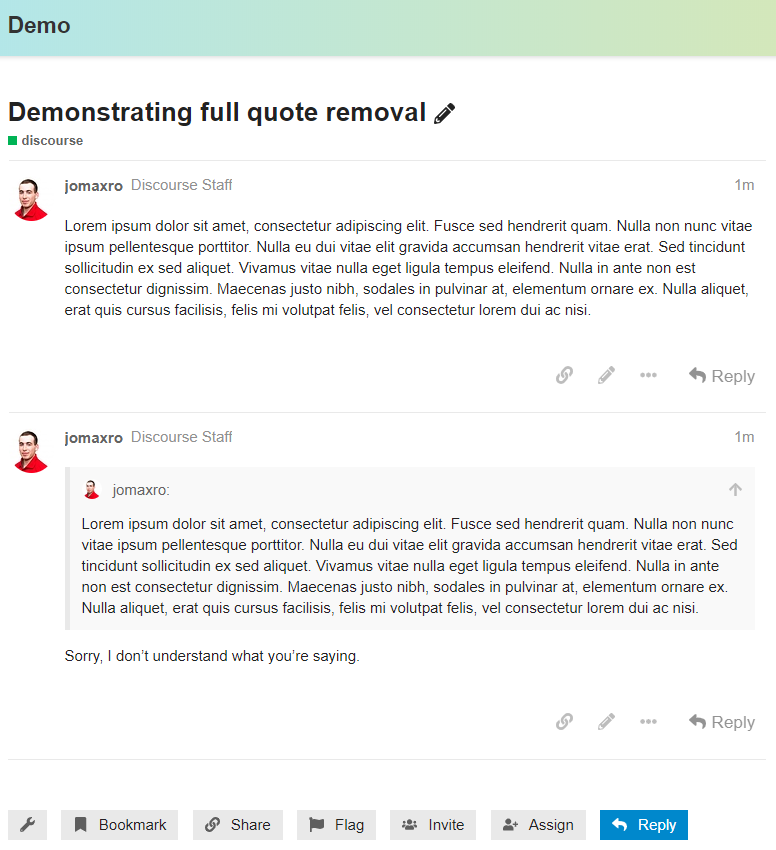 It removes the full quote of the previous post.
