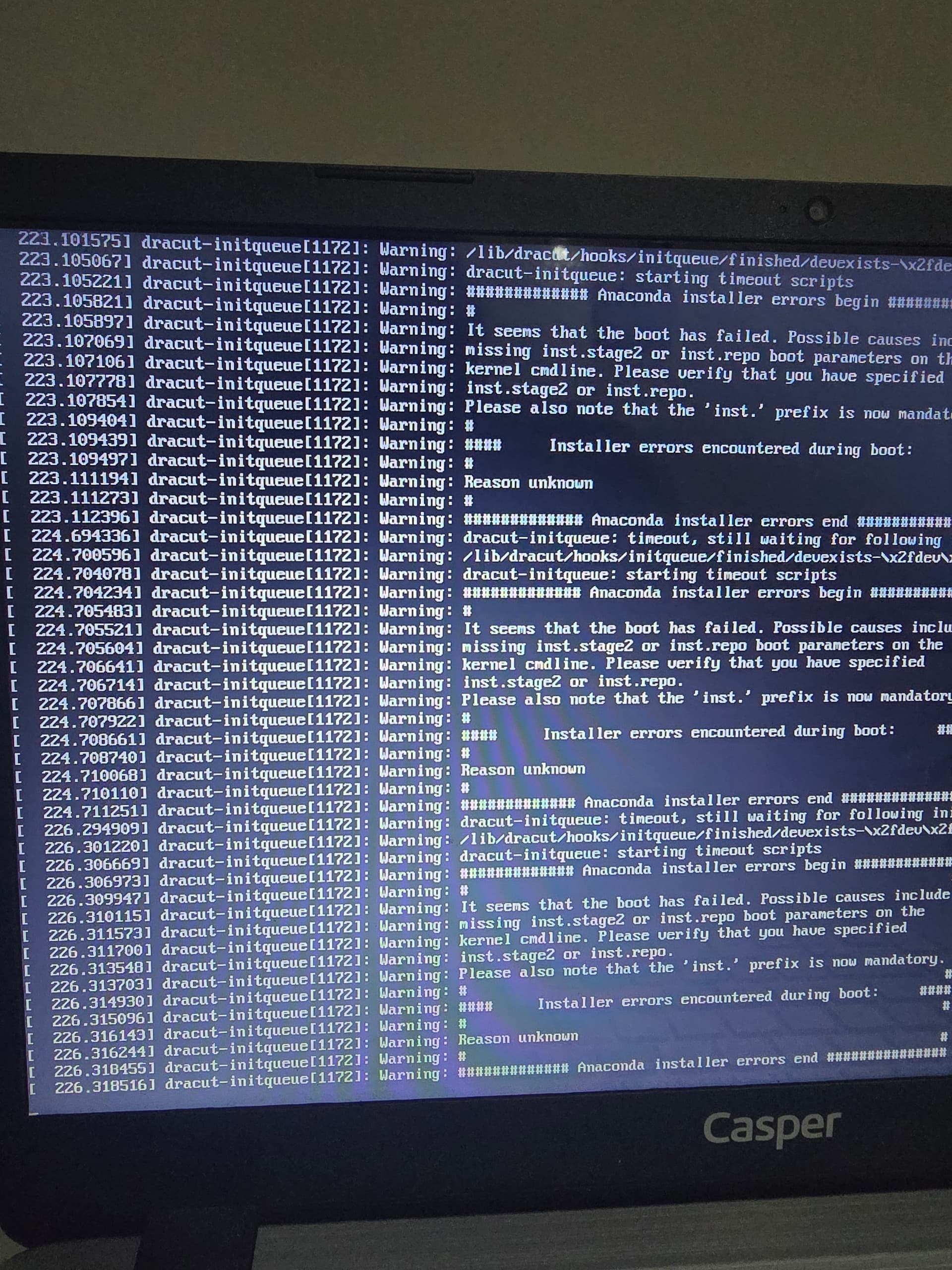 I did it on a casper laptop I registered on base via the rüfus and after completing everything, I encounter such a bug during the installation phase