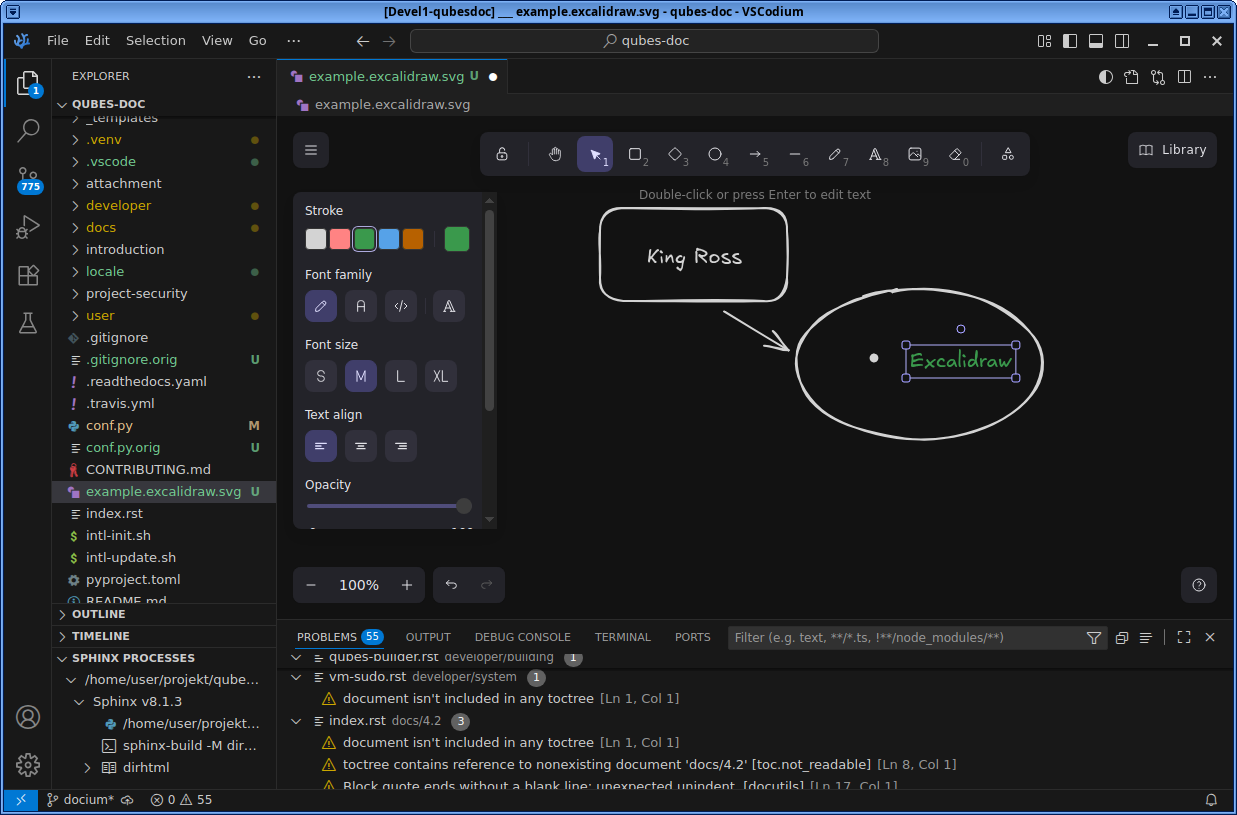 It’s basicly VSCodium with a bunch of fancy extensions to preview the qubes doc side by side
