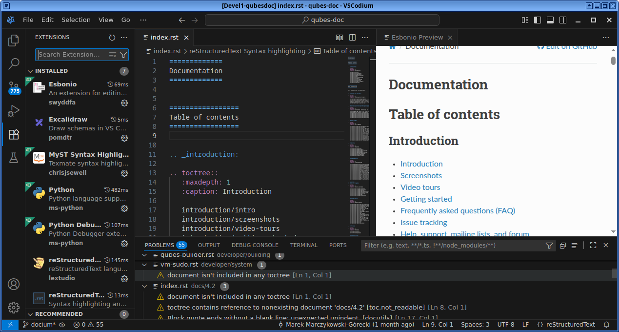 little writeup 'bout my setup for editing the new read-the-docs version of the qubes doc (forum-doc-announcement)