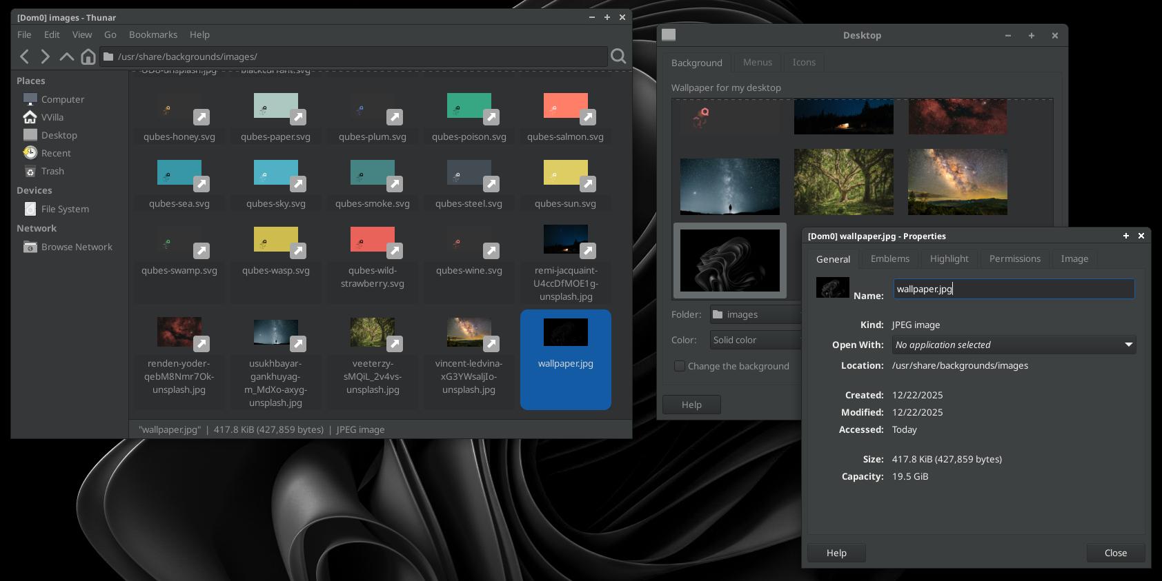 - A way to add a custom wallpaper so it appears in the standard Qubes wallpaper chooser.