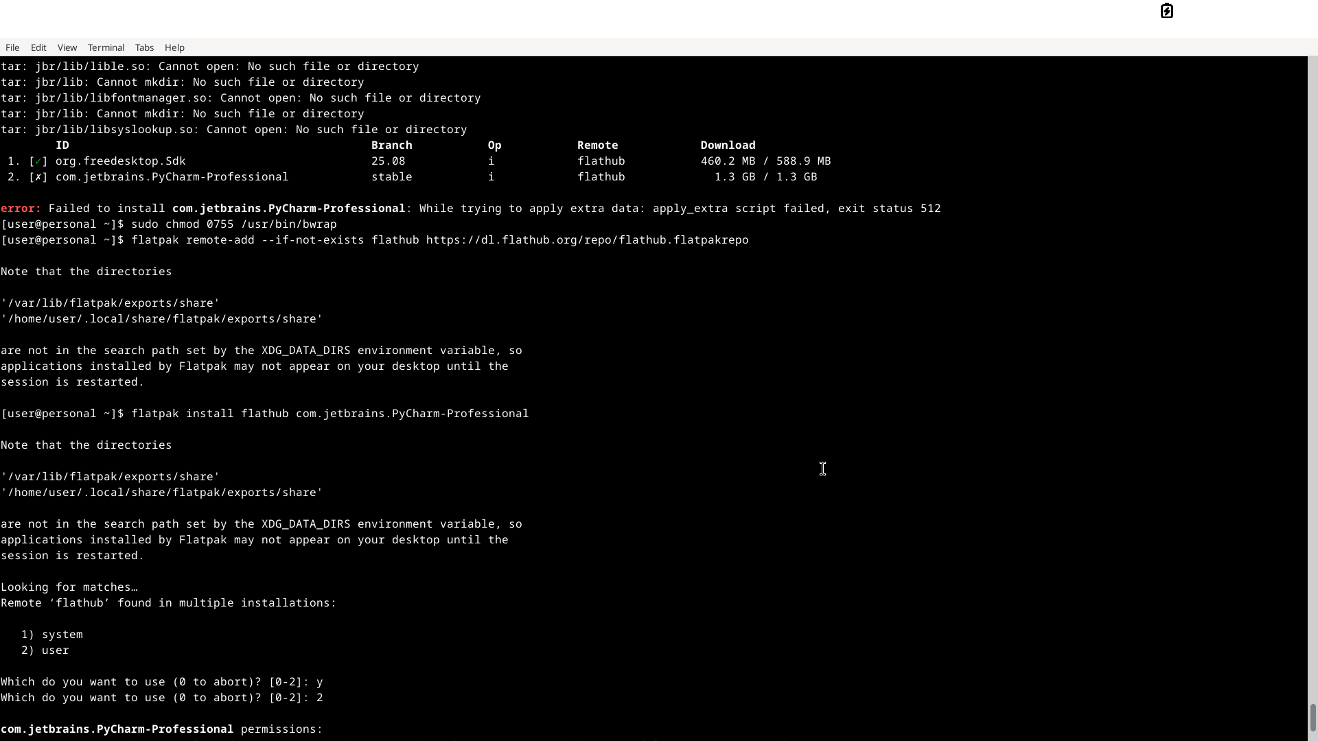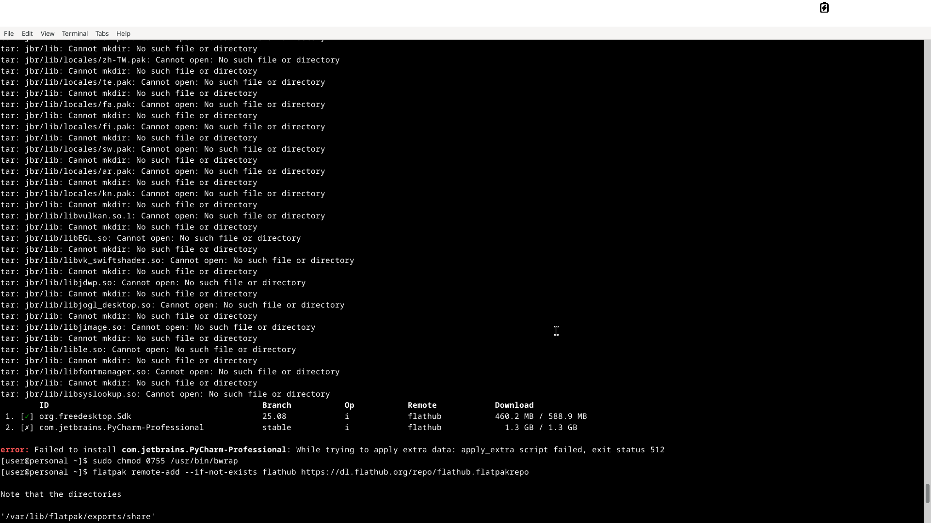 ^^ the second picture i just typed your command the sudo dnf install flatpak, okay it said already install ,but once i go to install an app or try to install the flatpak repository like flatpak remote-add --user -if-not-exists that command i get the error of /var/lib/flatpak whats in the other pictures
