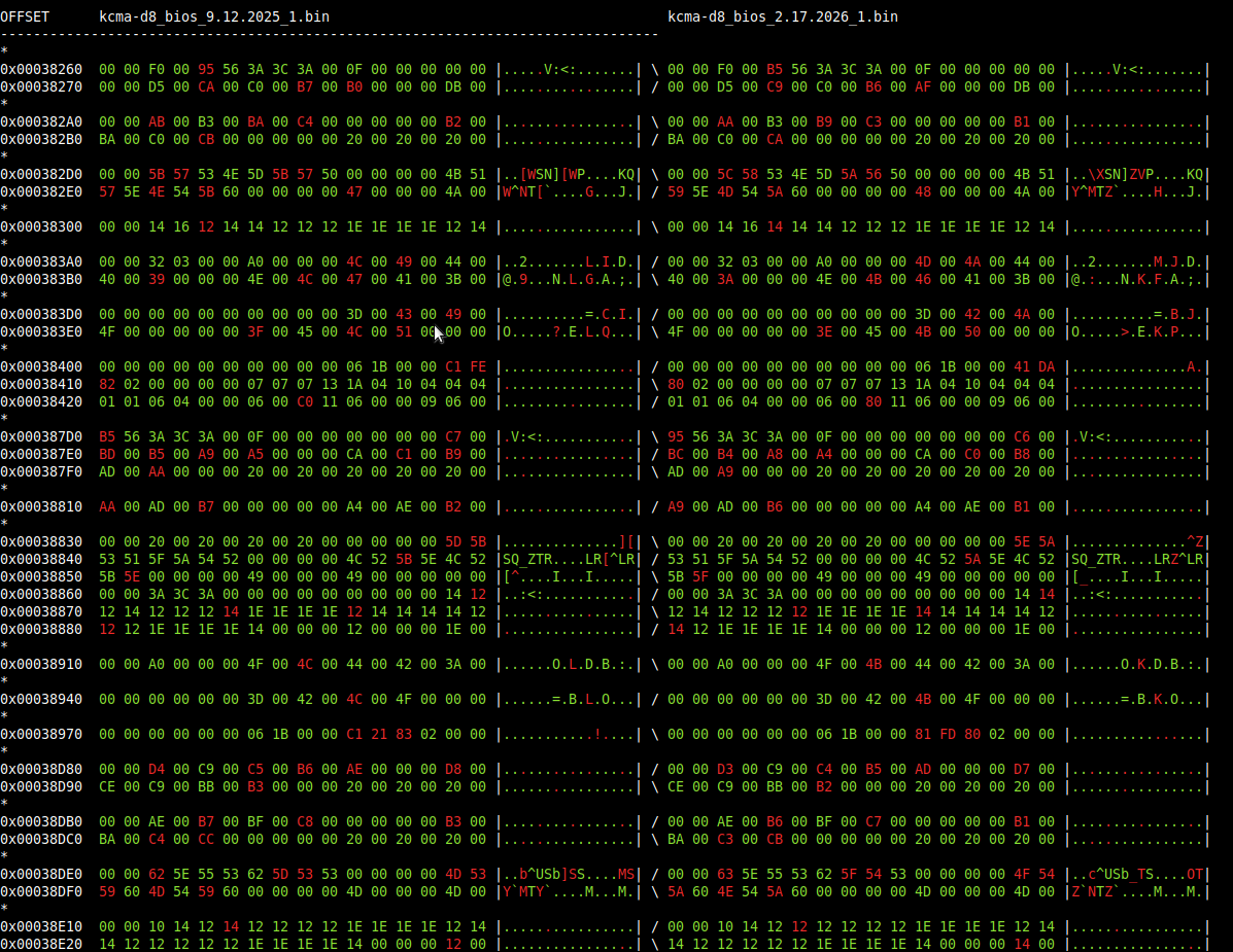 Took a flashrom image of the Bios from my KCMA-D8 PC and found a different checksum when compared to a dump I did 5 months prior. Could this be a hack, or could have I forgotten that I went and updated the bios since then? Well, here are the diffs. Not really qubes related, but still interesting nonetheless. I’ll find a way to get the binaries uploaded.
