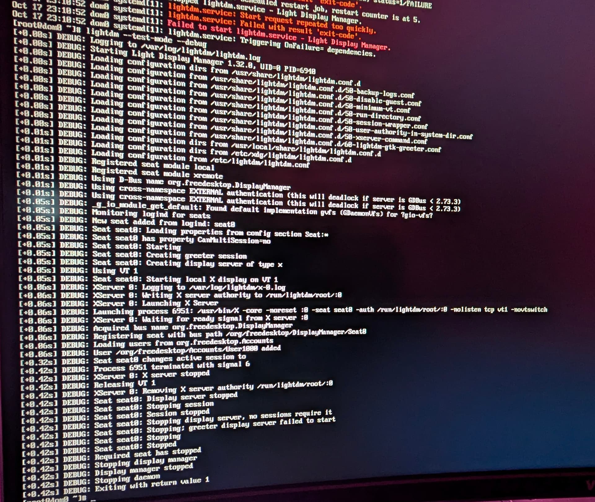 i just installed qubes on a new system with a nvidia dGPU and an AMD iGPU. After a dom0 update, i rebooted and now lightdm will not start. After typing in my FDE password, i get a black screen with white text, stopping at