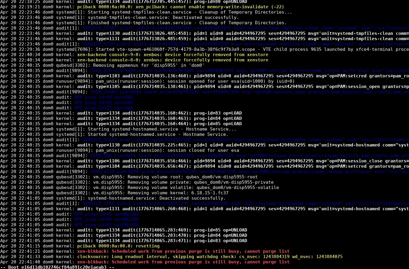 How it looks like in the dom0 when the Qubes crashes when shutting down the HVM.