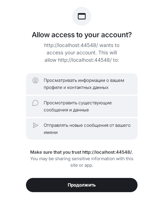 It’s whonix workstation based qube. Cinny flatpak app and matrix server. Previously I registered other account on other server in the same Cinny flatpak app and there was no pop up window. Now when I almost completed registration pressing register button there appeared a pop up window asking account access for some localhost44548. Too bad I had no time and just pressed “continue” and completed registration. It asked profile and contacts info access, messages access and permission to send messages on my behalf.
