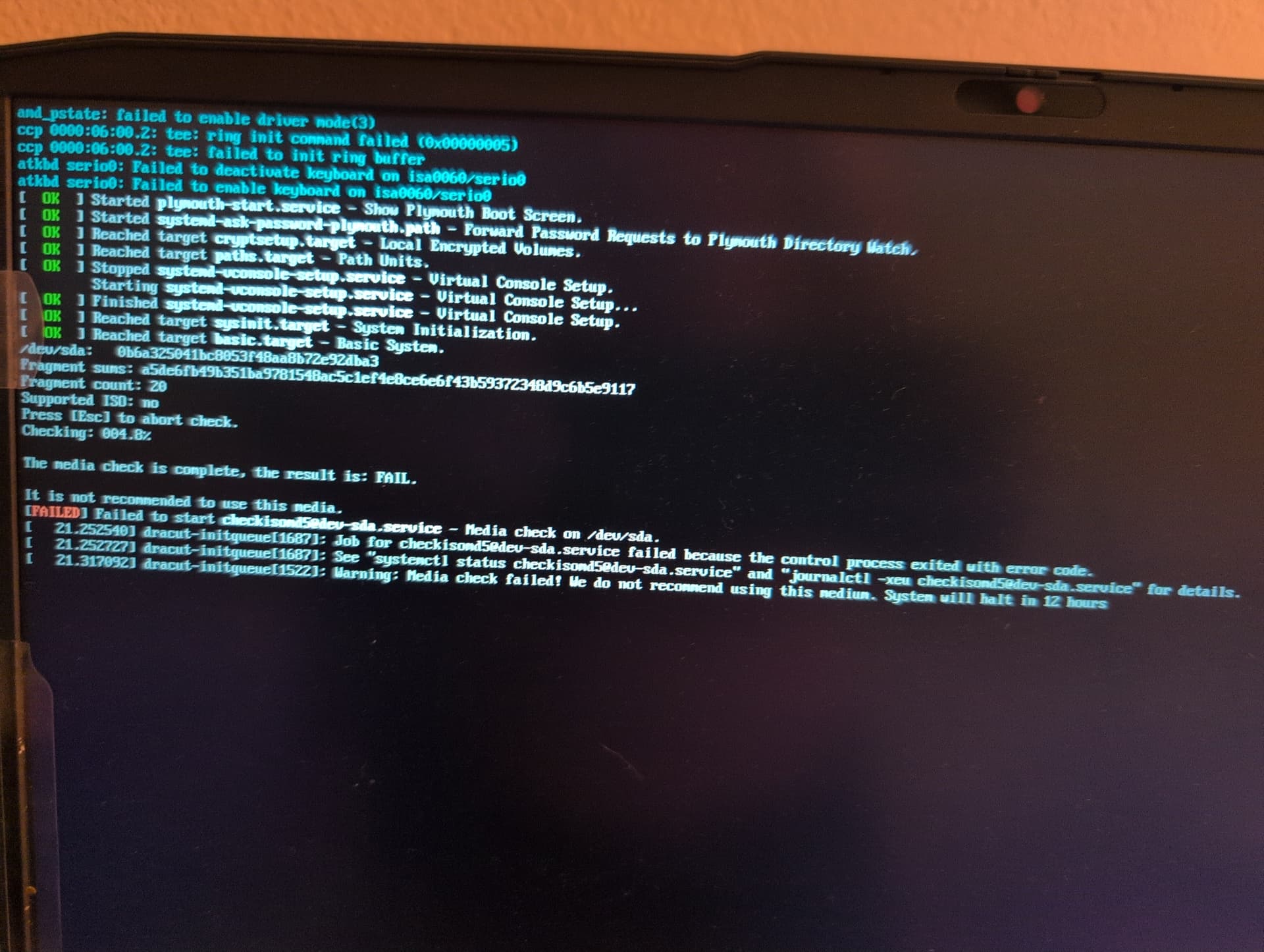 I tried using a brand new flash drive and the dd installation method on Fedora 42 and sometimes it passes the test on a different laptop but the test always fails on this laptop.