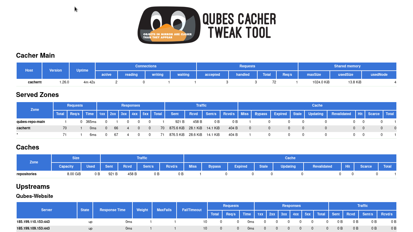 I believe that we have to see the bigger picture. Instead of disabling the update proxy at individual qubes, we could cache those requests properly. This is what I am currently doing. My setup consists of an Nginx reverse/forward caching proxy. The update proxy URL is set to http://{archlinux|deb|yum|ftp}.qubes-os.home. Nginx seats between Internet and tinyproxy. And caches and forward requests to either https://{archlinux|deb|yum|ftp}.qubes-os.org or https://mirrors.kernel.org/{distro}. So all the forward requests are over secure HTTPS protocol (and .onion compatible). I wrote a front-end for it to individually invalidate/purge cache if I desire to do so. Here is a snapshot: