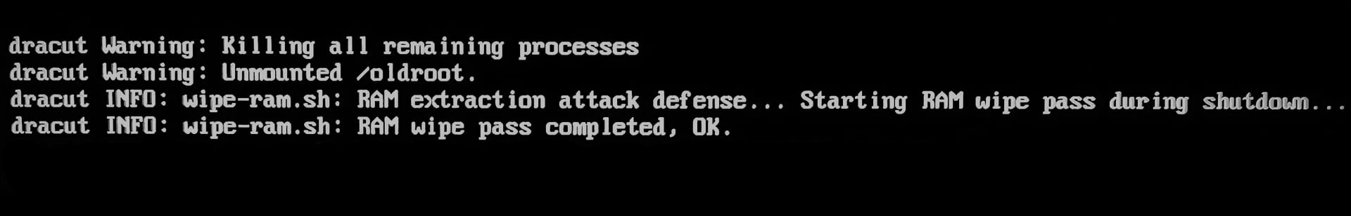 This script also adds the RamâWipe module to wipe memory after shutdown. This tool is used by Tails and original Kicksecure / Whonix to wipe memory for protection against cold boot attack.