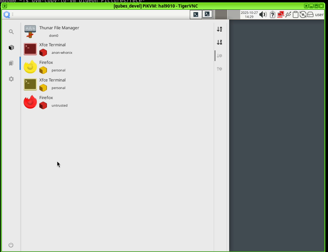 qubes-core-admin-addon-kicksecurepackage (for v18 templates). - Allowing to un-assign non-existing PCIe devices.