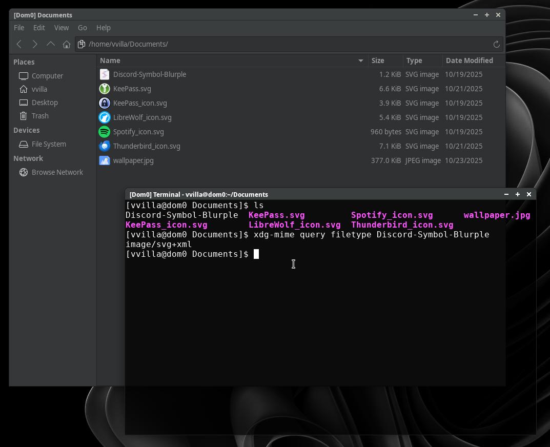 I can see the files extensions for images on dom0 File Manager “although, I’m not sure how I enabled it or by default” but not for text files, I can’t show them as well inside other qubes.like personal and vault “extensions like .txt - .jpg - .zip - .config - .bat… etc”