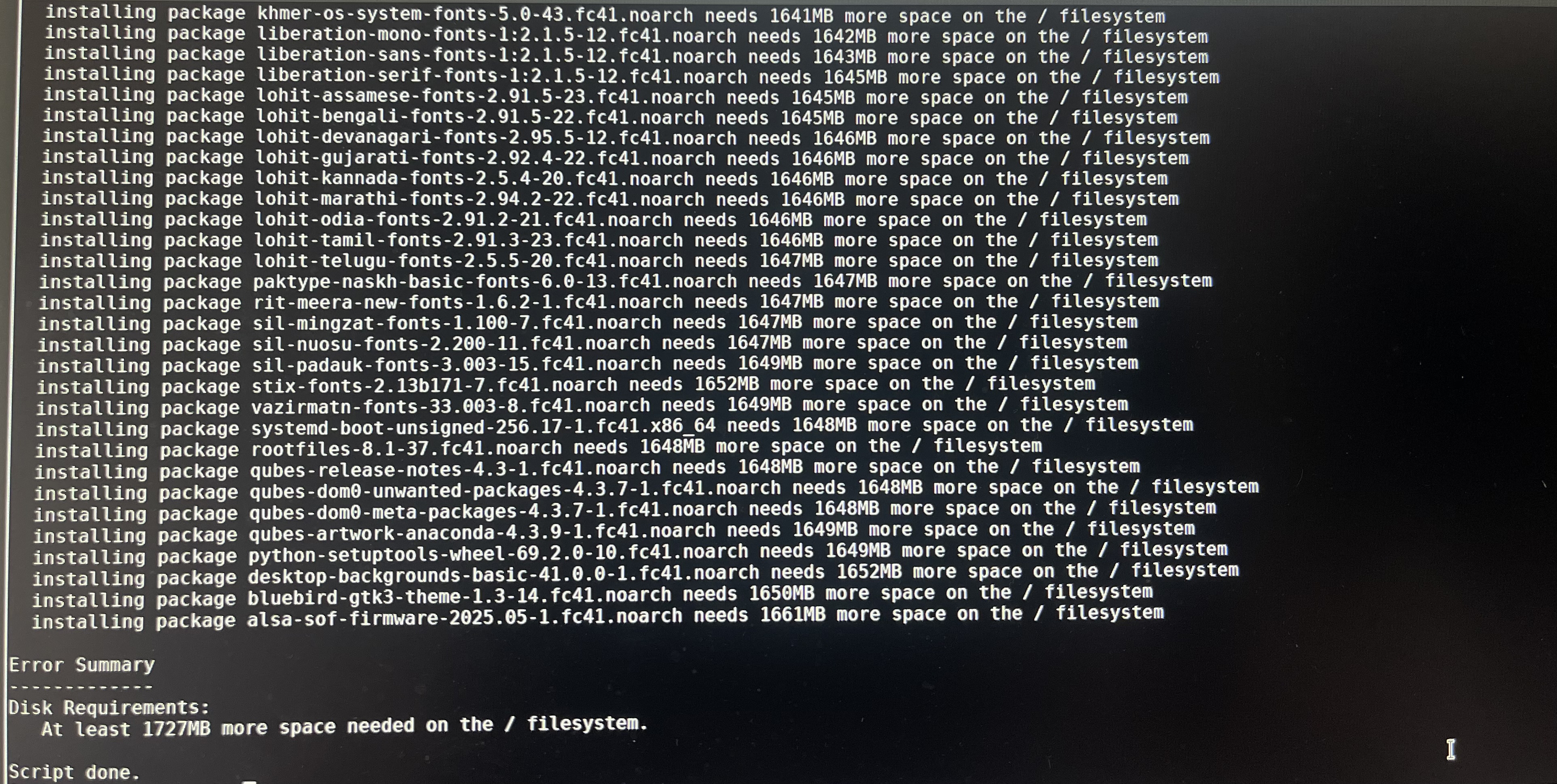 Says i need another 1727mb on the file system there is currently 4.9GB available in dom0
