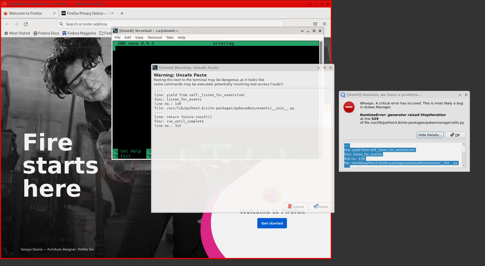 Then, I receive a critical error message - which originates from qubes Manager.