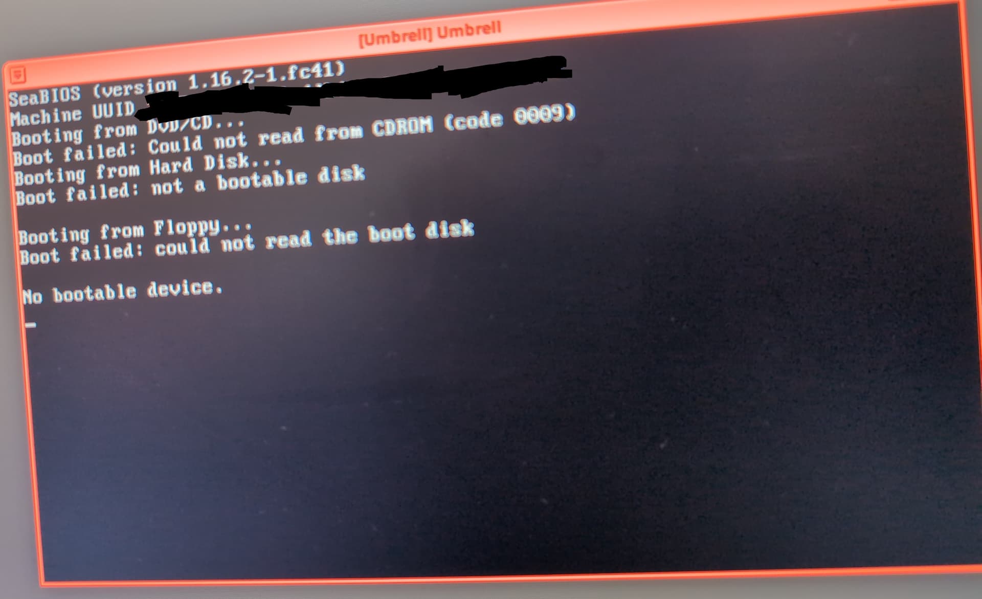 Booting failed: not a bootable disk