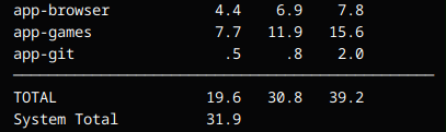 footer="${footer}$(printf '%-20s %5s' 'System Total' "$system_total_gb")"