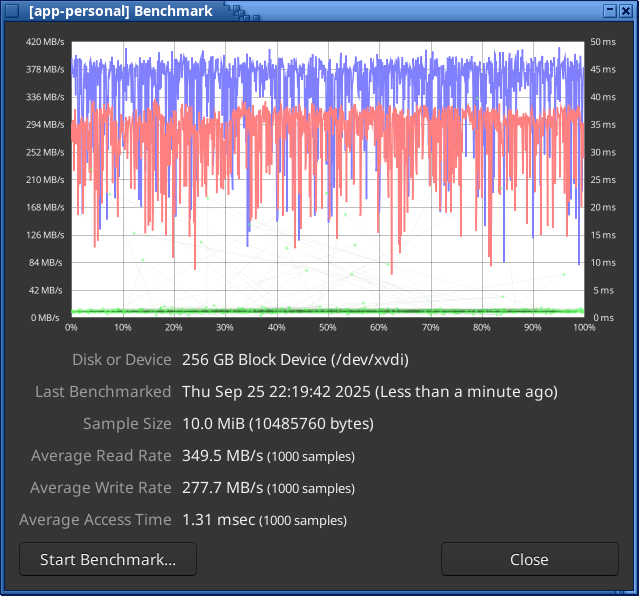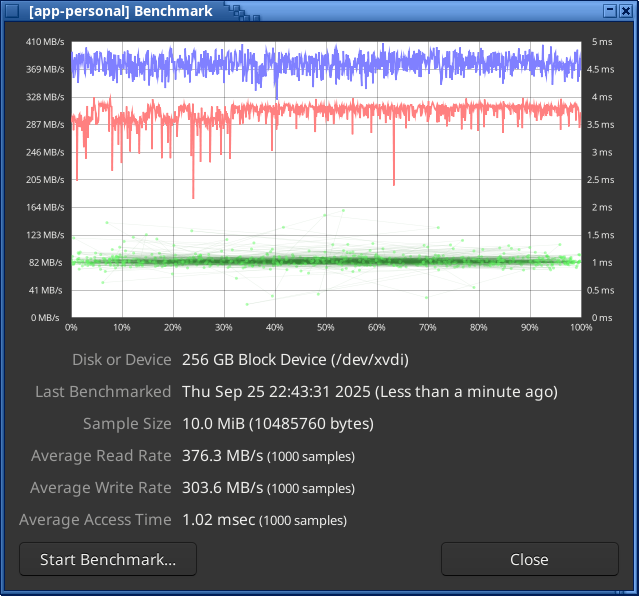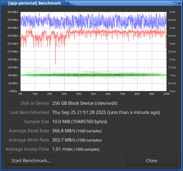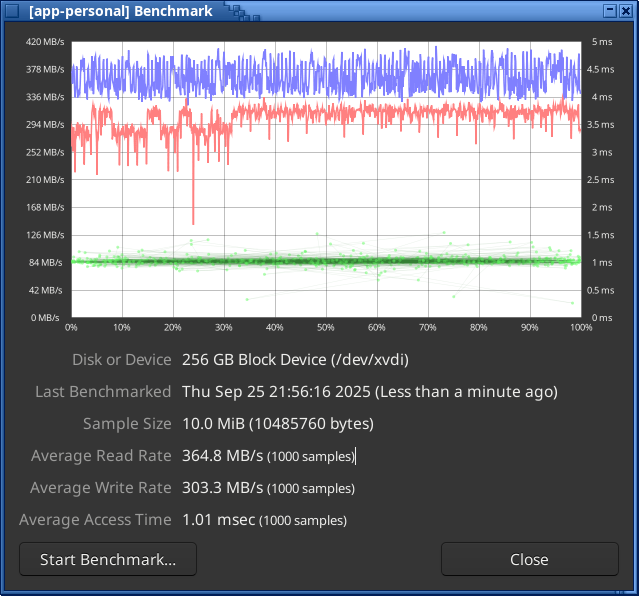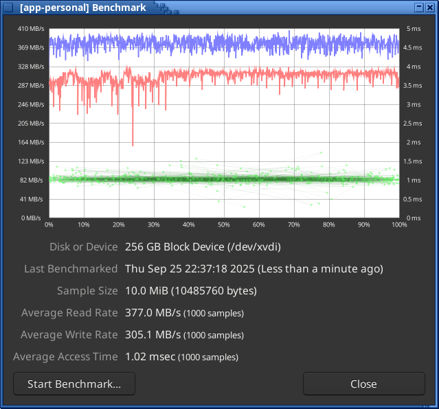 1073741824 bytes (1.1 GB, 1.0 GiB) copied, 2.83719 s, 378 MB/s